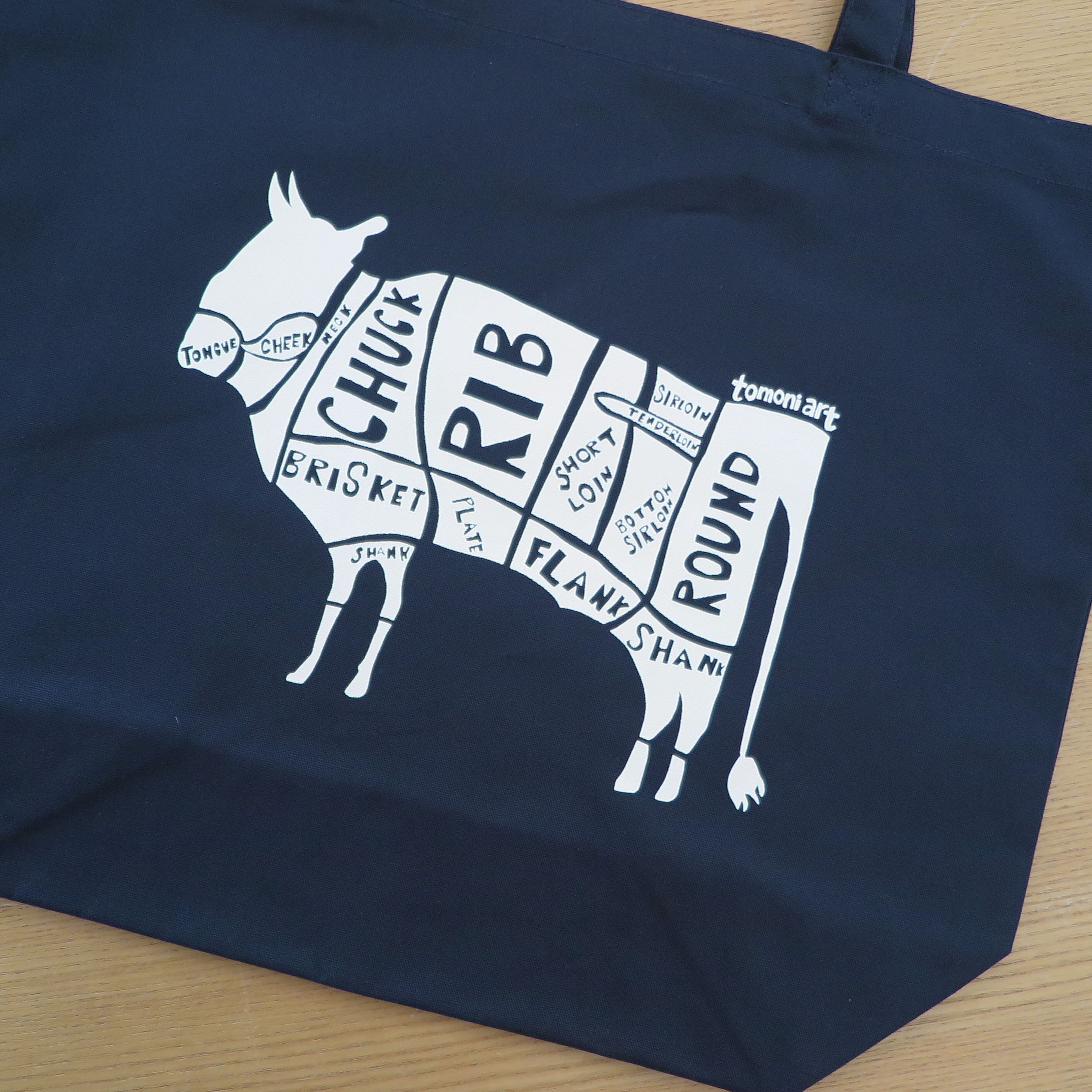 オリジナルプリントトートバッグ 牛(ネイビー)